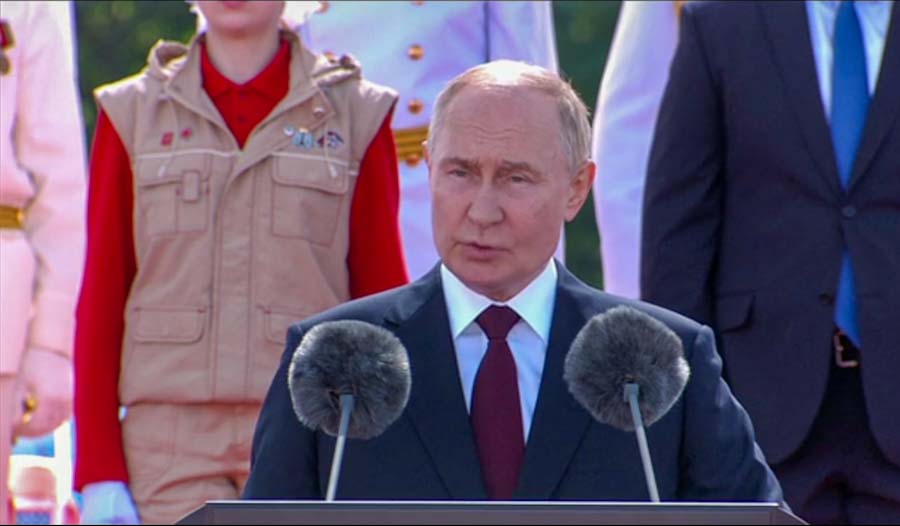 Putin, konuşmasında ayrıca, “Ana deniz geçit töreninde Cezayir, Hindistan, Çin savaş gemilerinin mürettebatlarını, onlarca yabancı ülke ve delegasyon temsilcilerini içtenlikle selamlıyoruz. Bugünkü bayramı bizimle birlikte kutlayan ve denizcilerimizi ve komutanlarımızı tebrik eden bu değerli misafirlerimize hoş geldiniz diyoruz.” ifadelerini kullandı.